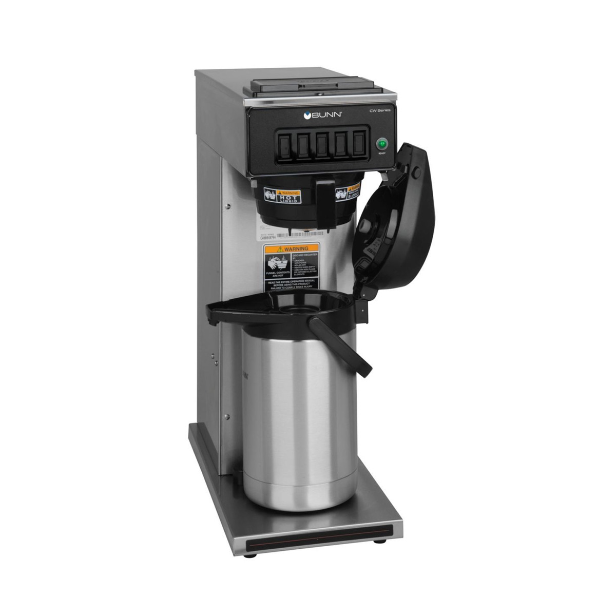 BUNN® Commercial CWA-APS Airpot System 23001.0024 ist ein kompakter Filterkaffeebrüher für den gewerblichen Einsatz, der direkt in transportable Airpots (1,9 – 3 Liter) brüht – ideal für Tagungsräume, Frühstücksbuffets oder den Catering-Bereich.