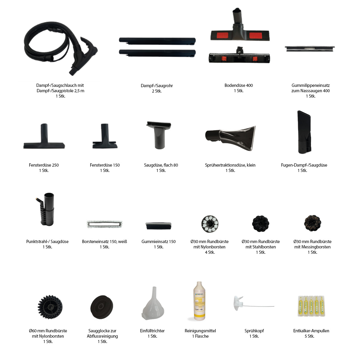 Darüber hinaus ist der Dampfsauger auch bestens für den KFZ-Bereich geeignet: Er reinigt Fahrzeuginnenräume, Polster, Armaturen, Lüftungsschlitze und schwer zugängliche Stellen gründlich, materialschonend und nahezu rückstandsfrei – ideal für Werkstätten, Autoaufbereitungen und Fuhrparks.