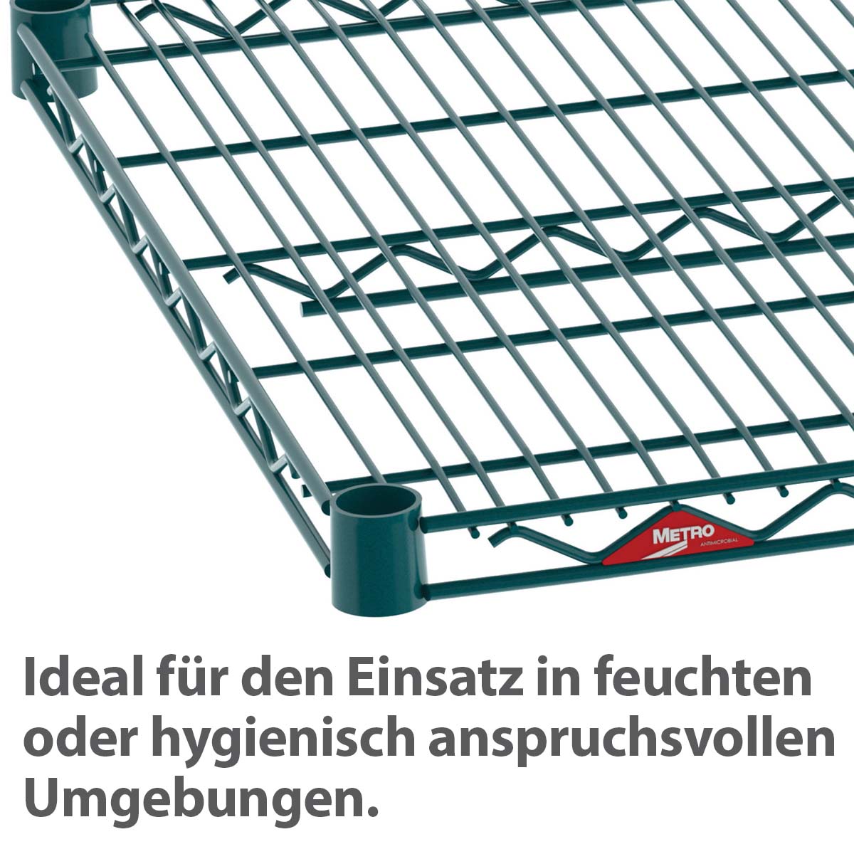 Eine antimikrobielle Schutzschicht Microban® hemmt das Wachstum von Bakterien dauerhaft und sorgt dafür, dass das Regalsystem auch zwischen den Reinigungszyklen hygienisch bleibt.