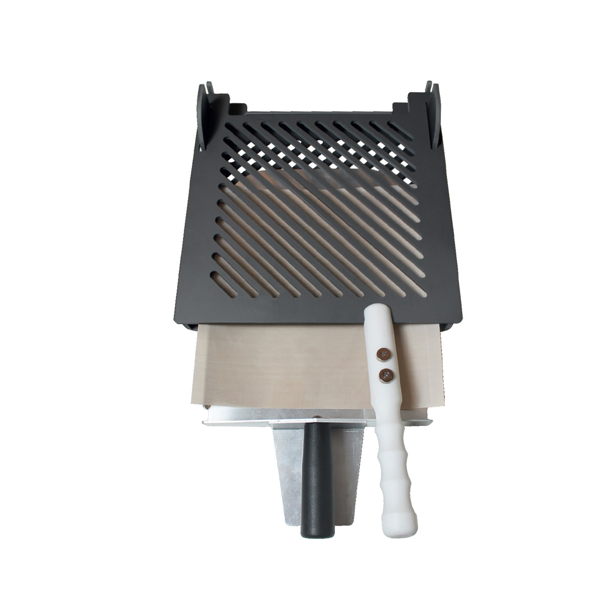 Dank des praktischen Schiebemechanismus gleitet das Essen mühelos zwischen die oberen und unteren Platten der Presse.